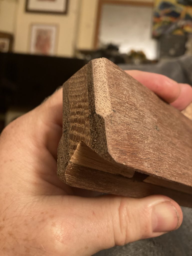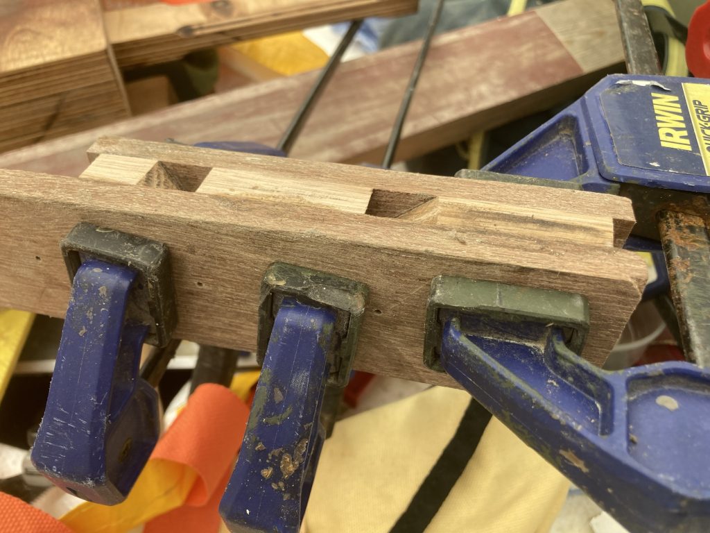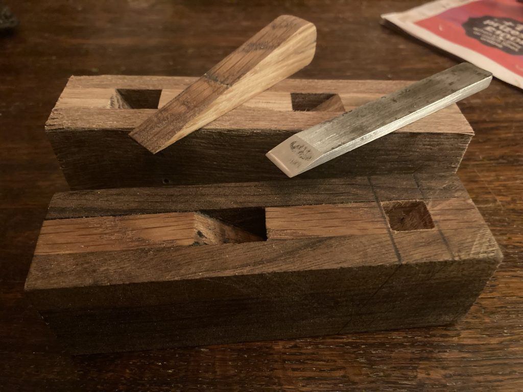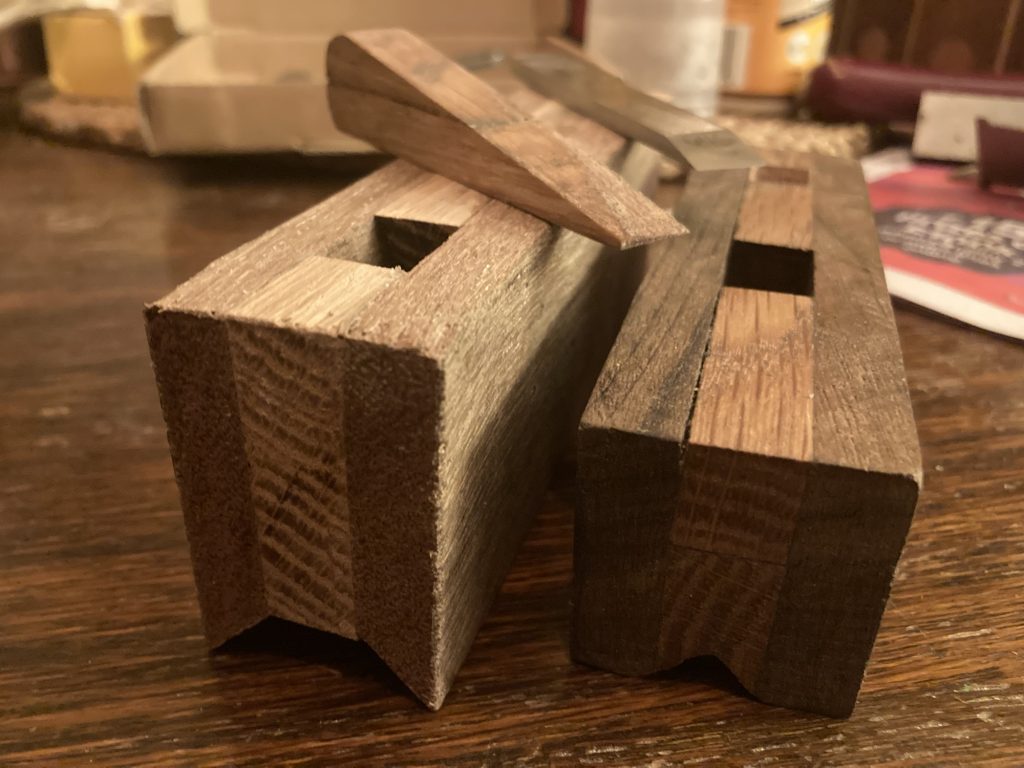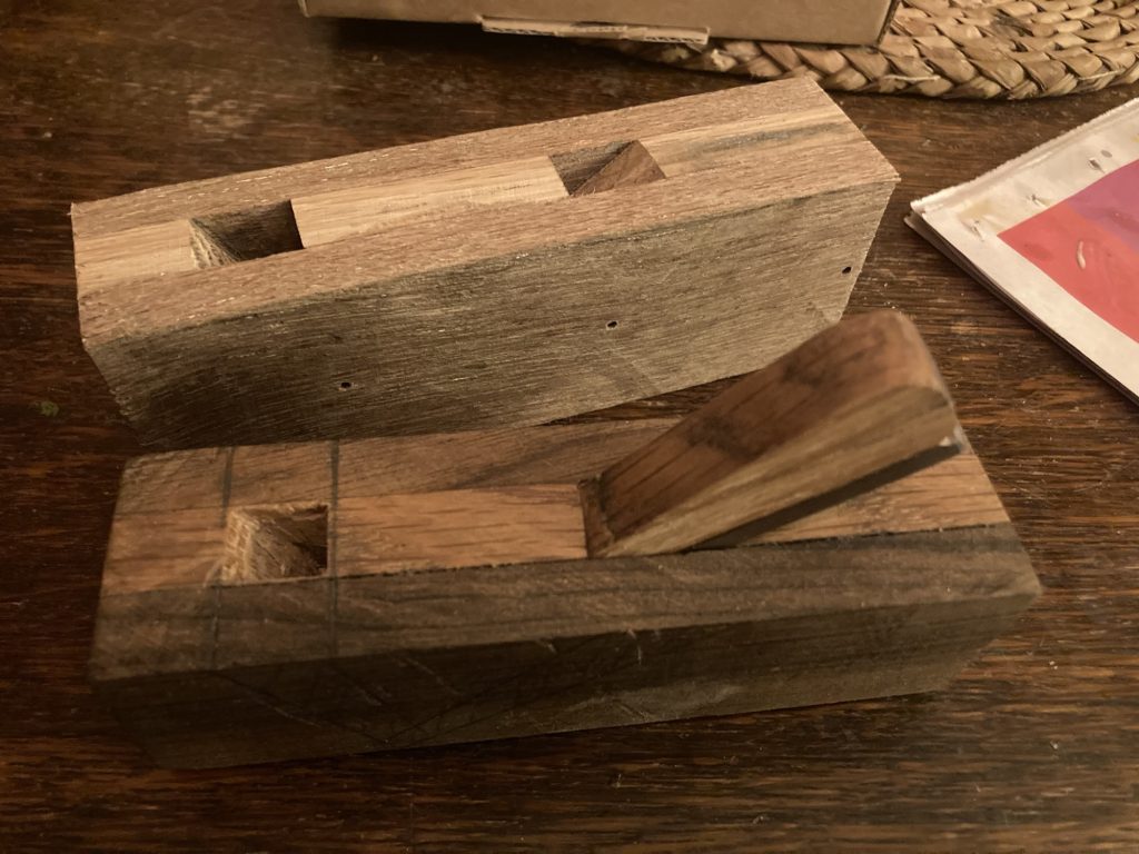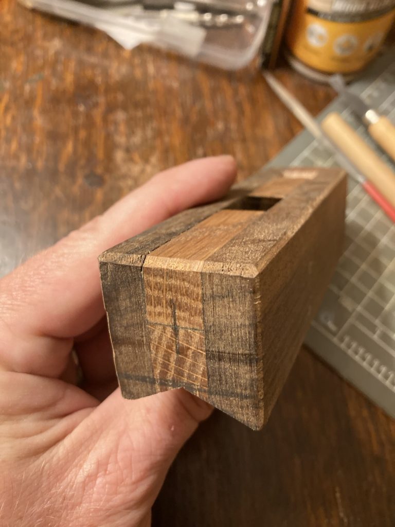 Having butchered my first attempt at a bevel plane, I’m trying again. This is gluing up the new one. I didn’t take many pictures of the building process, sadly.