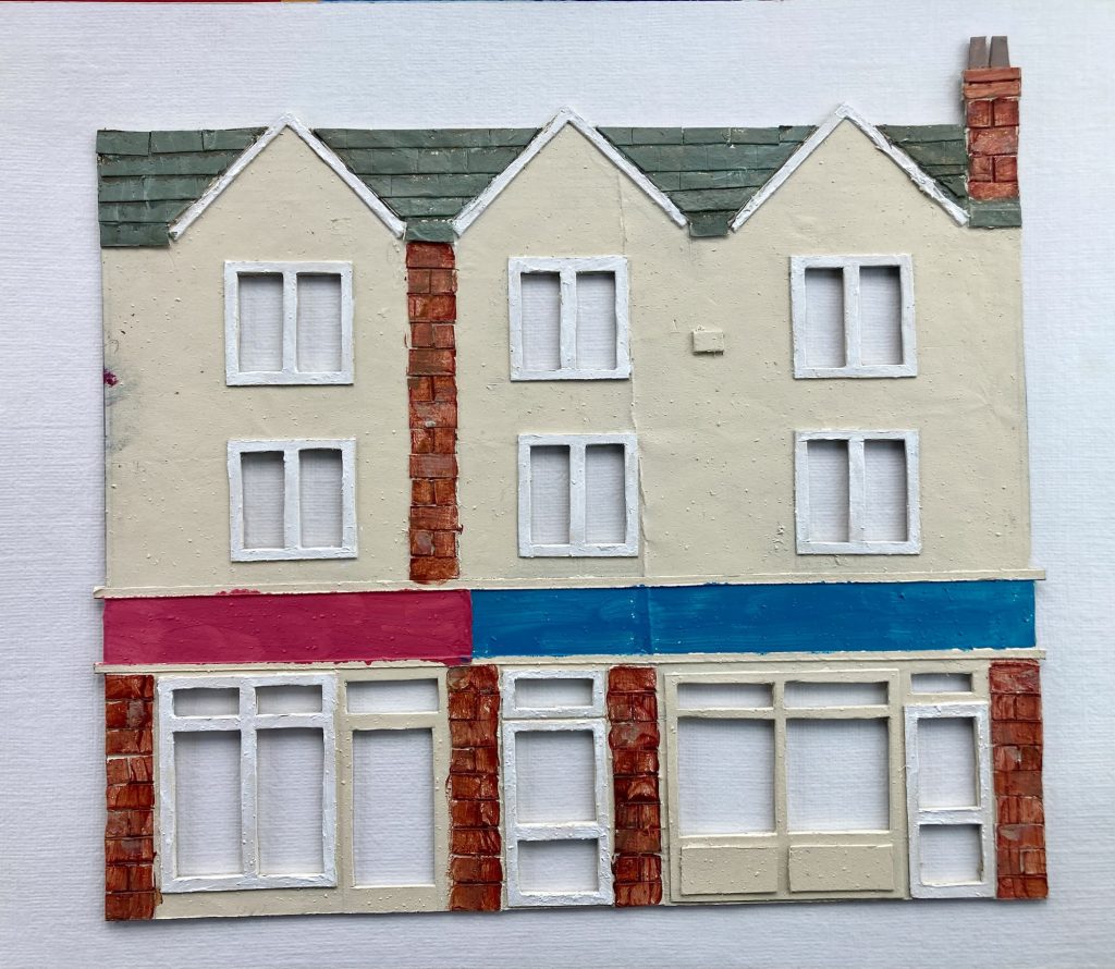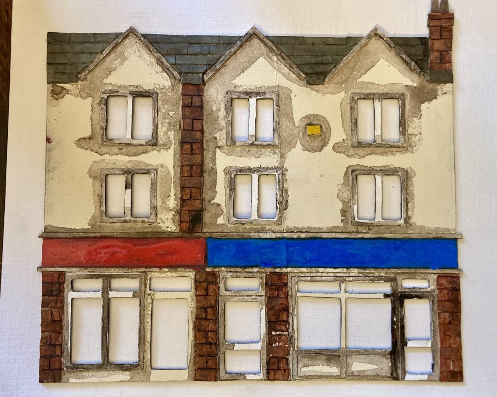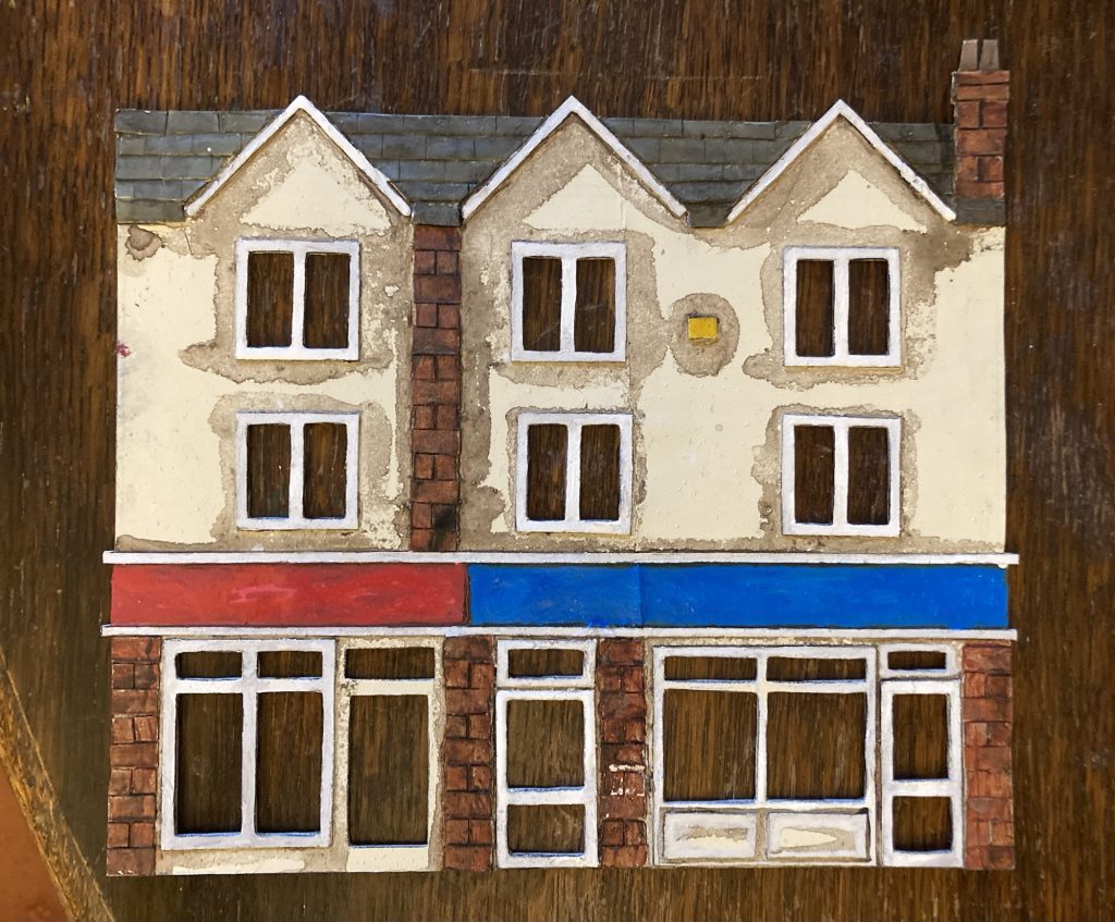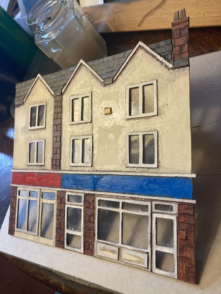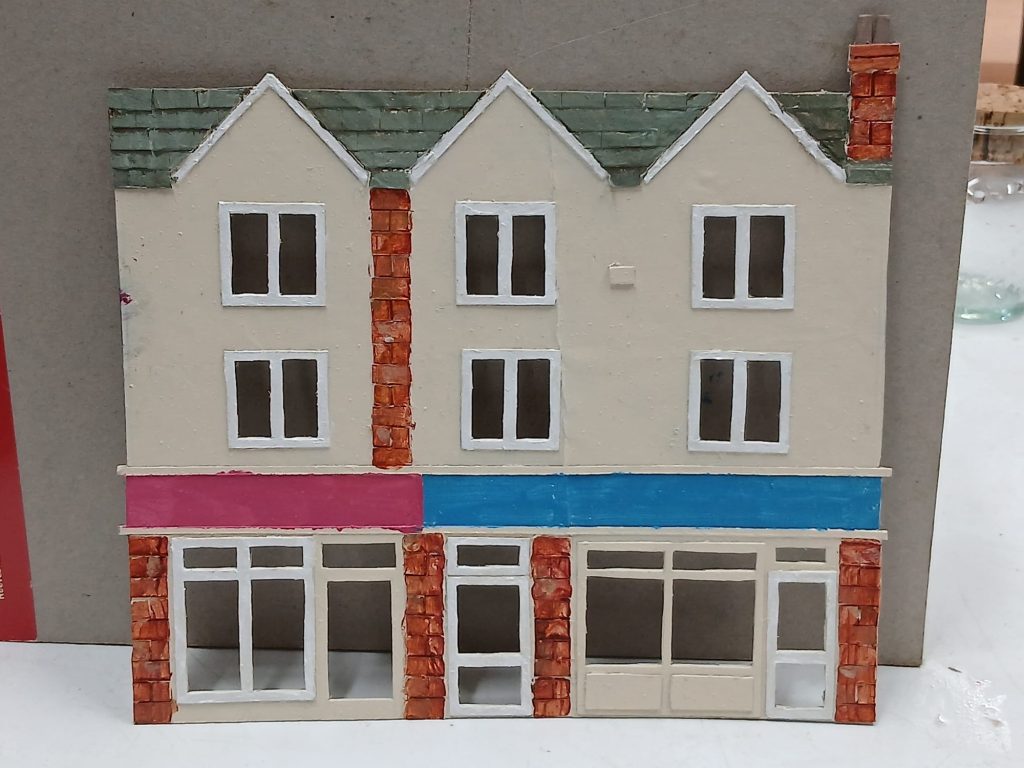 A little while ago Sally, at Shedders & Fixers (poss’ at Chloe’s suggesting?), asked me to do this shopfront.