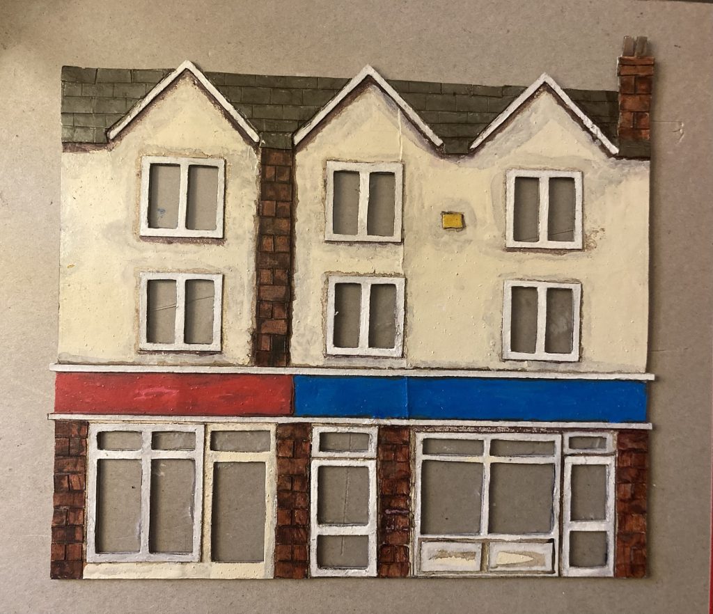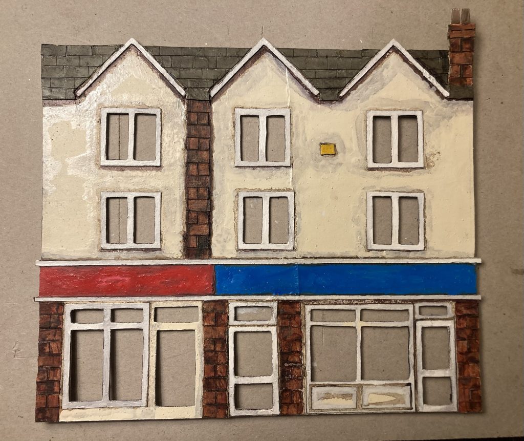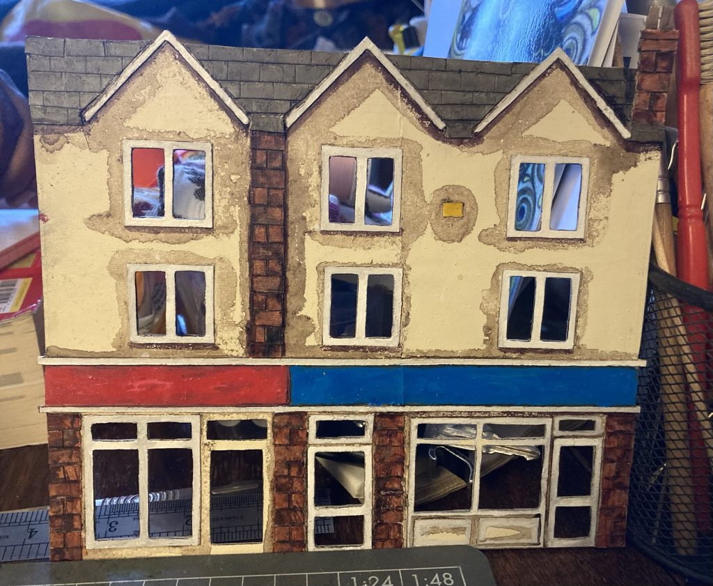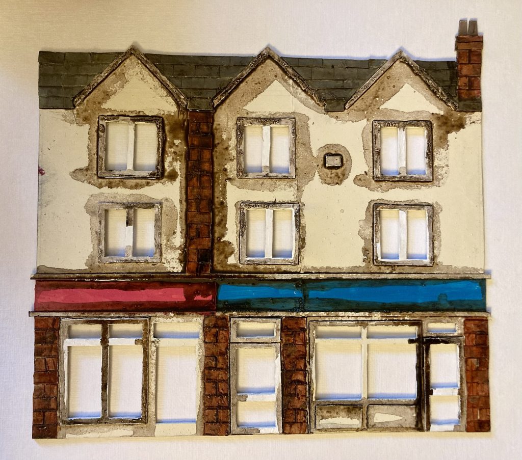 A little while ago Sally, at Shedders & Fixers (poss’ at Chloe’s suggesting?), asked me to do this shopfront.