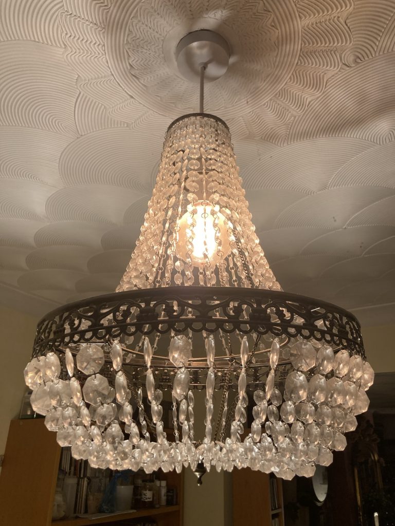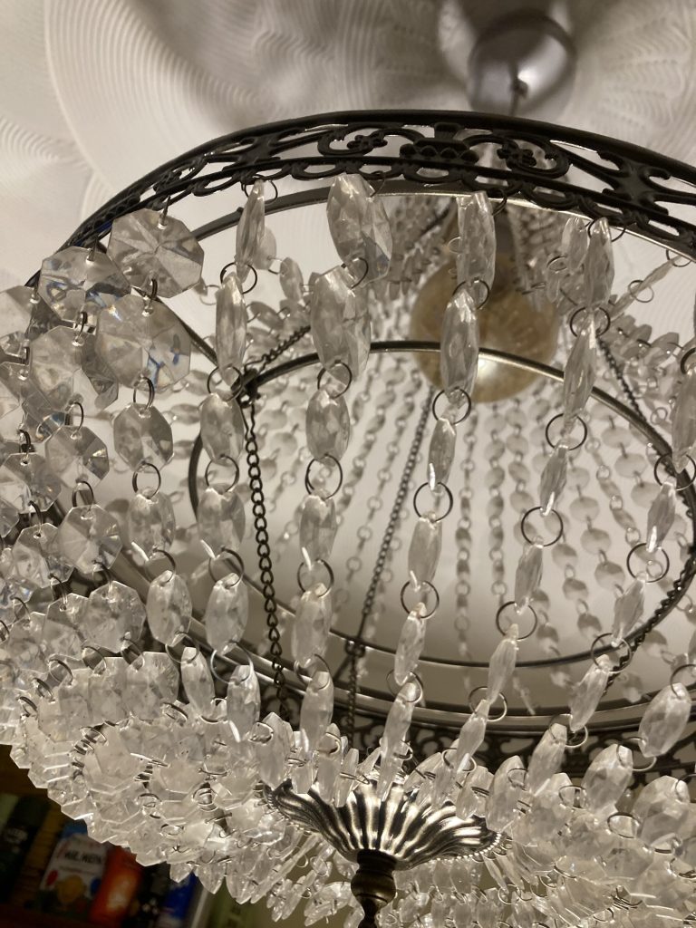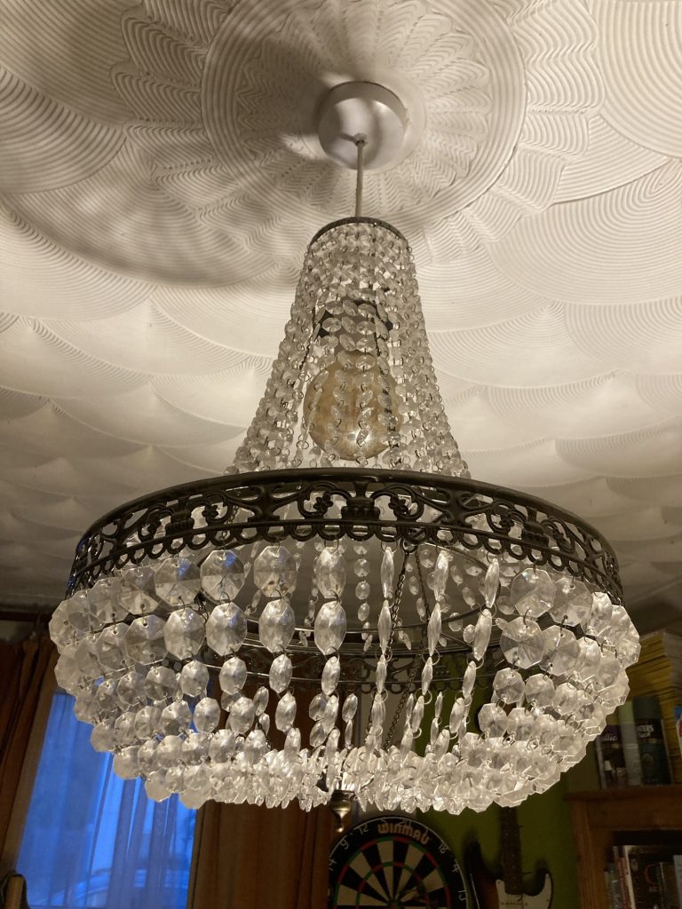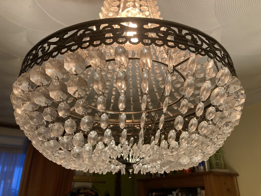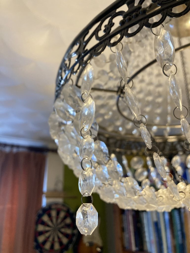 Every now and again something catches on this chandelier light, and sometimes that cause a bit of damage. I’ve already had to repair one dangling set of ‘crystals’.