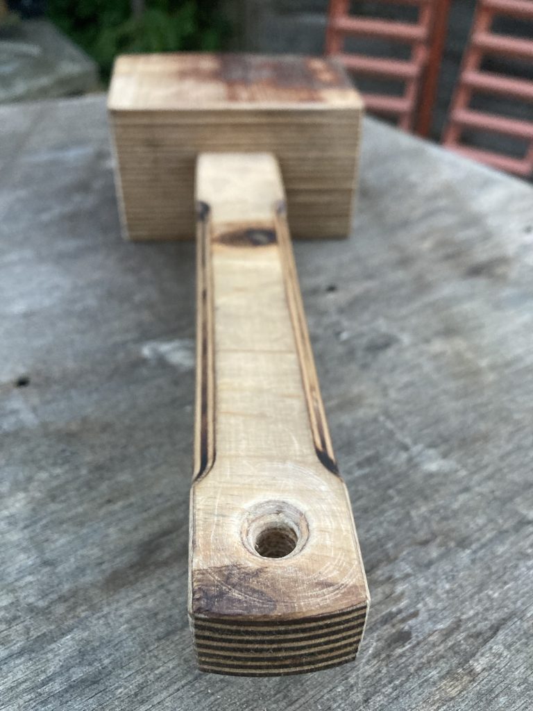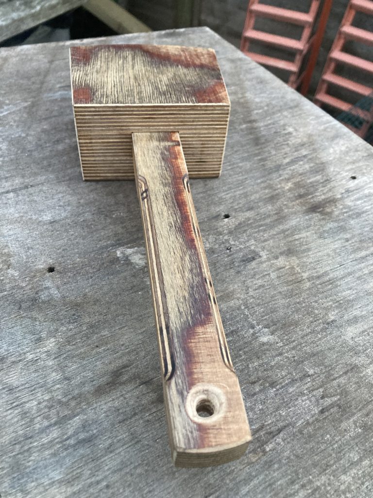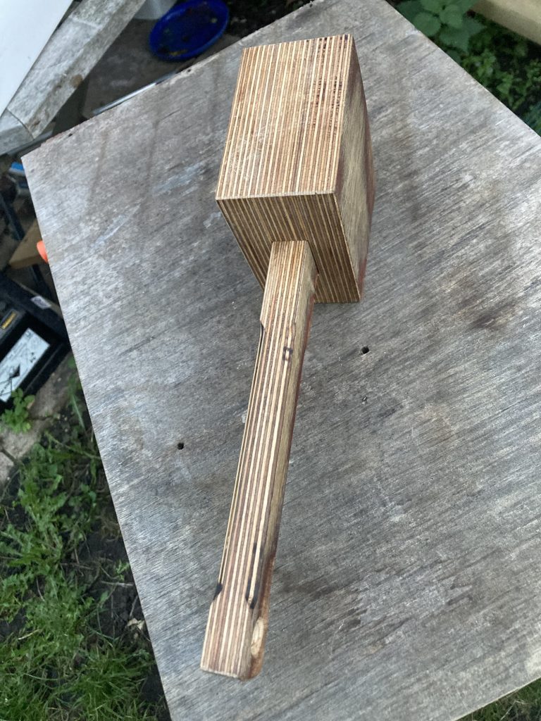 Having tested it at Shedders & Fixers, where I got the f-functional essence f-f-finally f-f-f-finished, once home, I used it to finish off the mallet I recently made for our pal, Yanni (must post tomorrow!). The pics above attest to it working as intended.