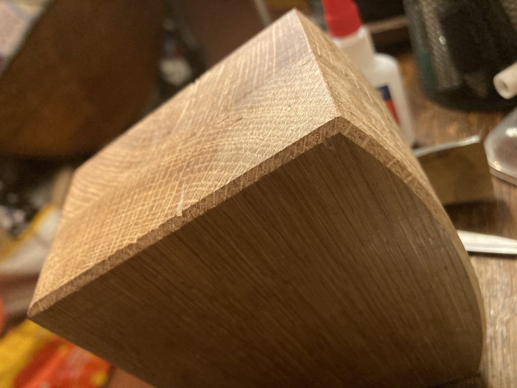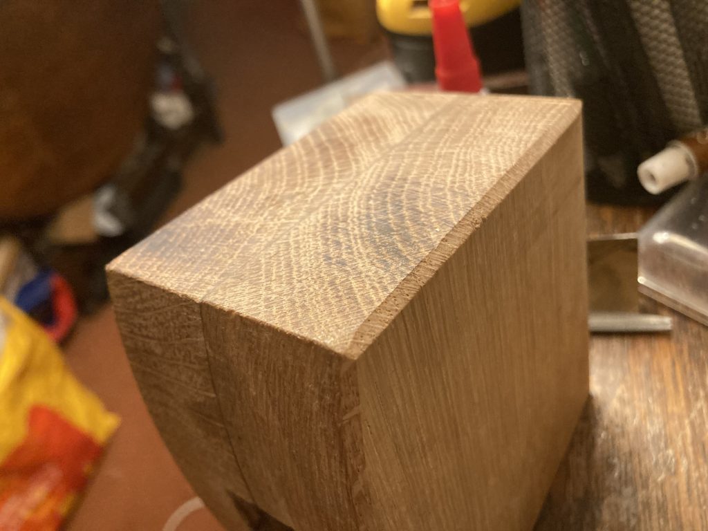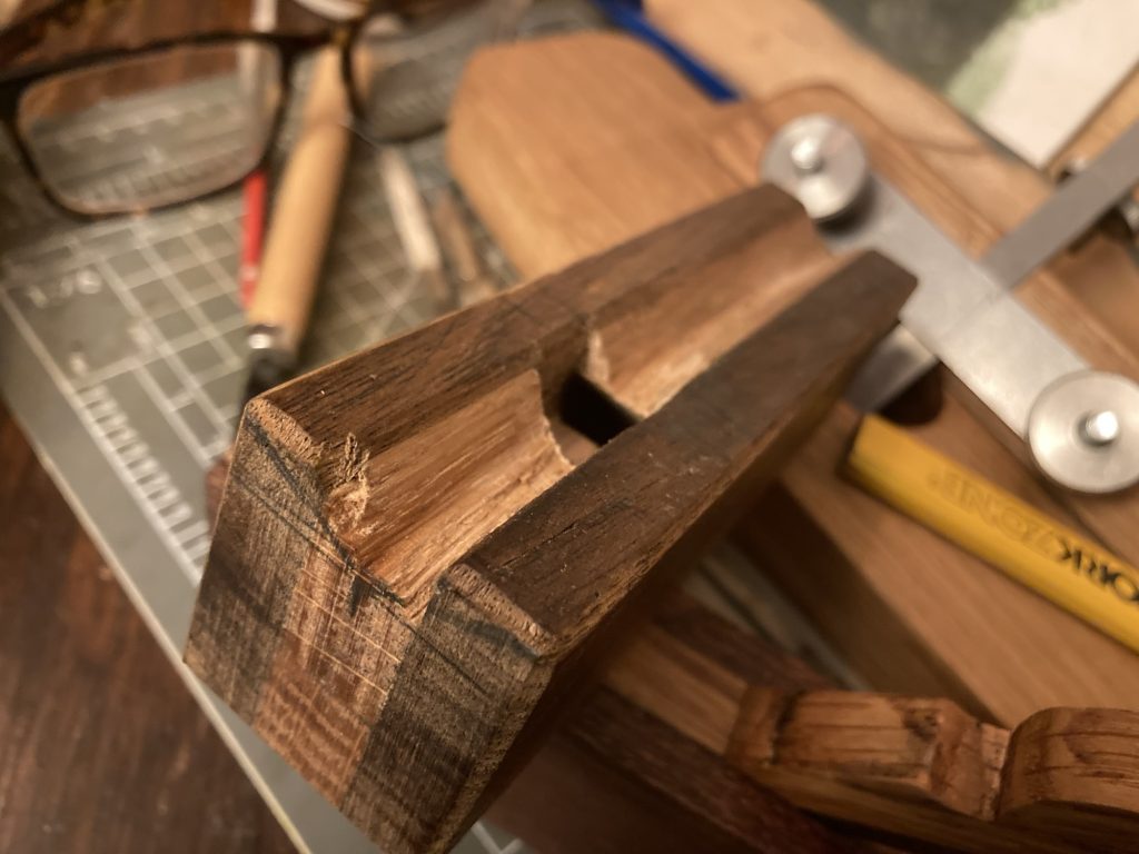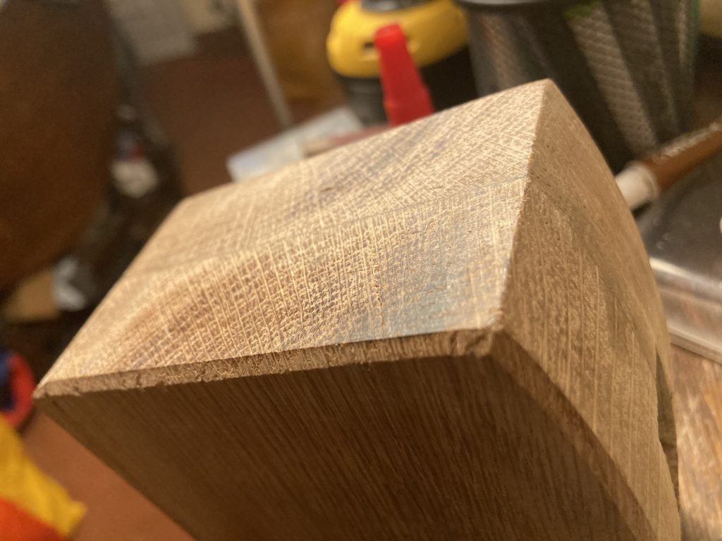 I adjusted the iron, to cut a little deeper into the oak. That was a bit dumb! I should’ve dialled it back, if anything, and done the deeper bevelling in several passes.