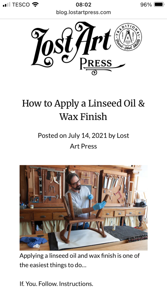 Googling the subject ‘linseed oil paste wax’ this morning brought in a result from lostartpress.com, whom I also learned of via James Wright.