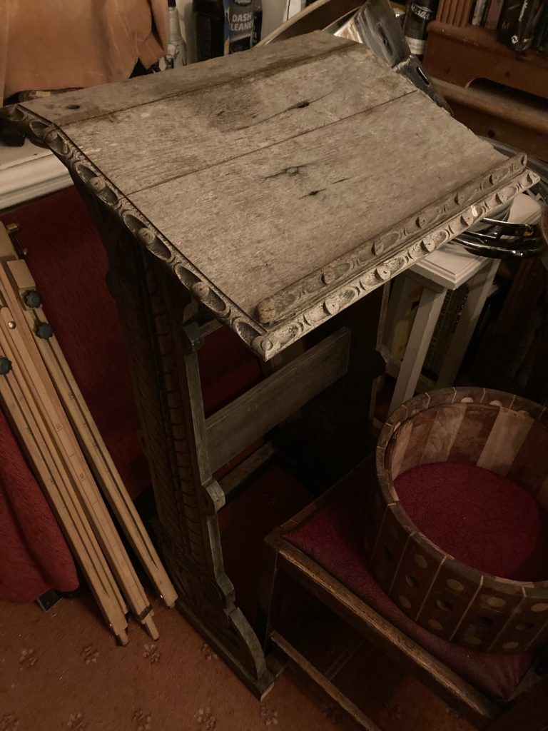 I bought this old lectern, most likely originally from a church, from the reclamation place in Three Holes.