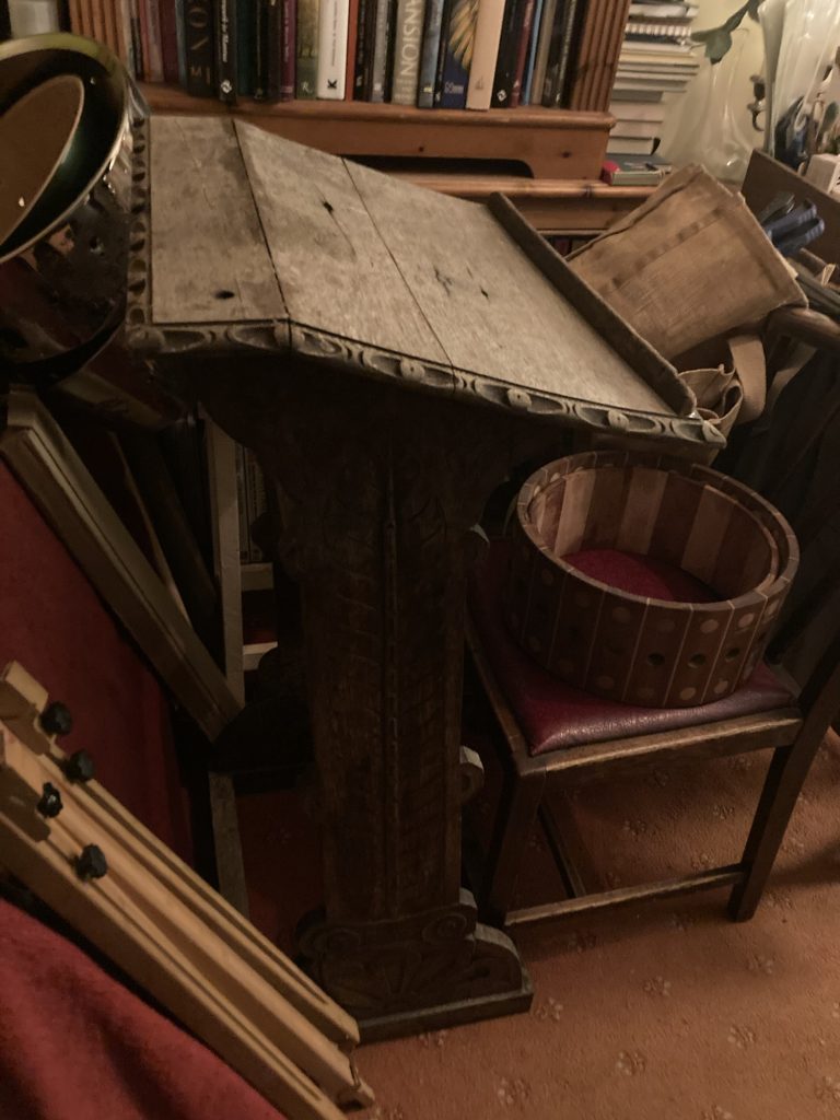 Originally, or at least when I first got it, it hated a kind of platform, for standing on, when at the lectern. I didn’t like this; it made the whole piece both unwieldy and space-consuming.