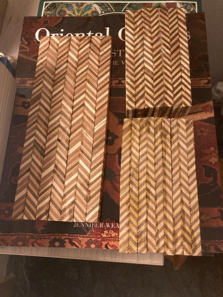 I brought these three new blocks of herringbone patterned plywood that I’ve created. I worked on all three at S&F, this morning.