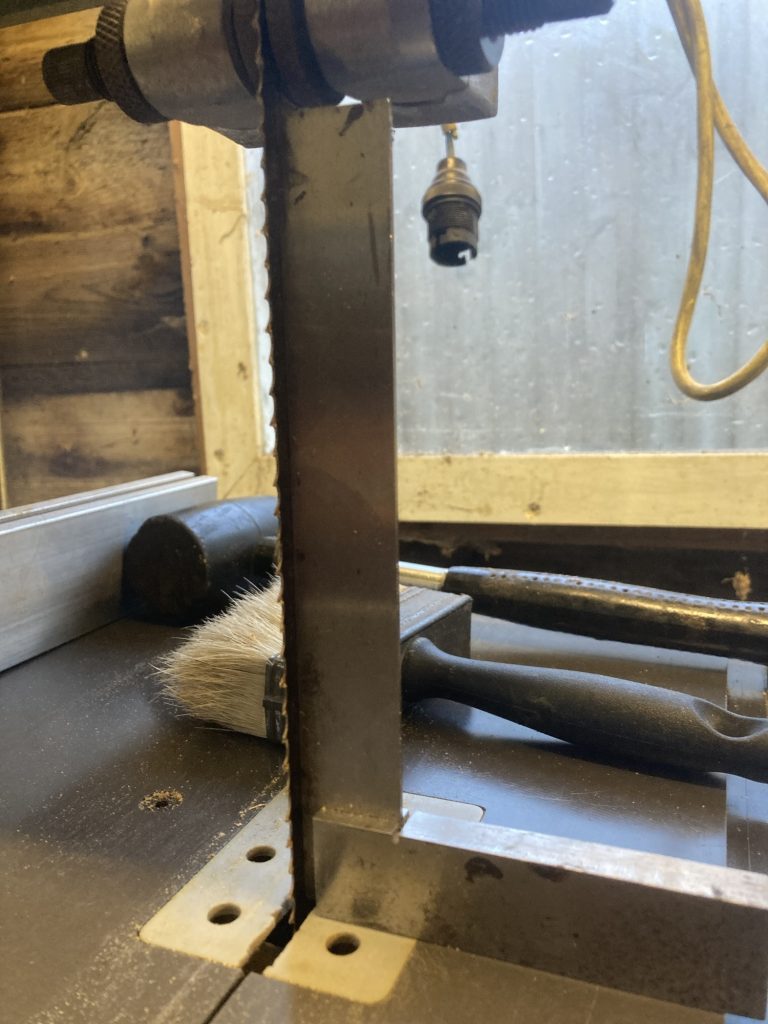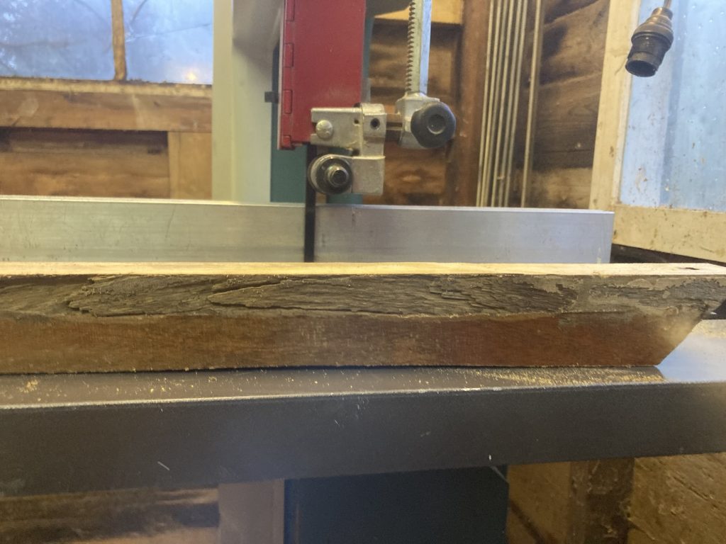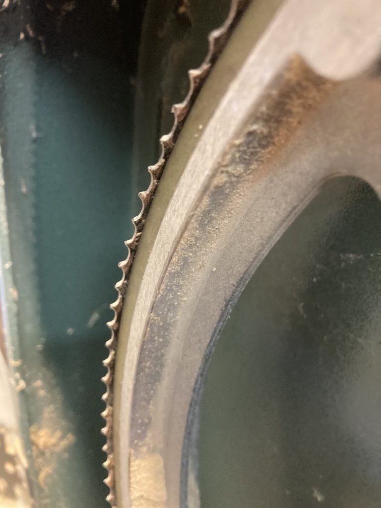 But, despite all these things, and setting up the top wheel tilt and tension, to get the blade running in the correct position; and adjusting all the guide bearings, etc, it still drifts like hell, and – when working at its best – results in a concave bowed cut.