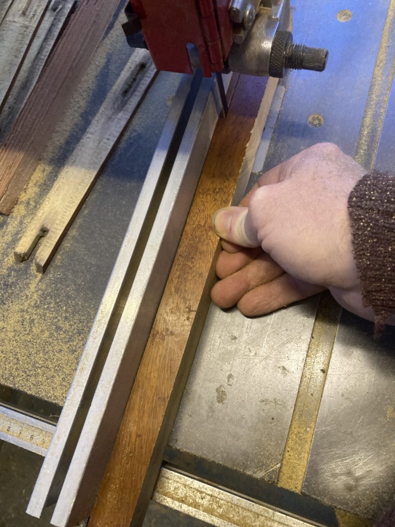 That saw me turning ply laminate blocks into the herringbone patterns you see above. I’d have liked to cut a load of veneers, whilst there. But I ran out of time. And the blocks were still gluing when we left.