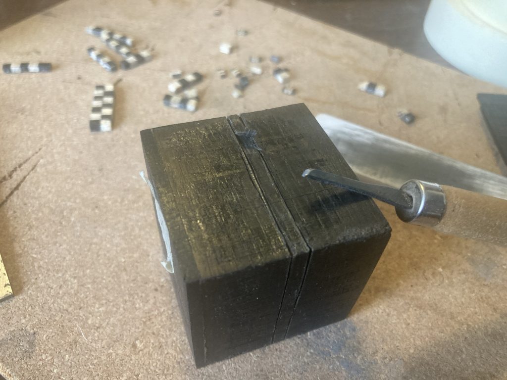 This wood – I don’t know what timber it is – is for gluing to the back of the patterned veneers. To strengthen them. And to give an appropriate thickness for box building.