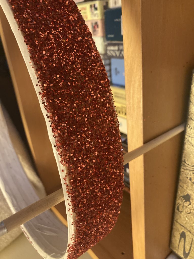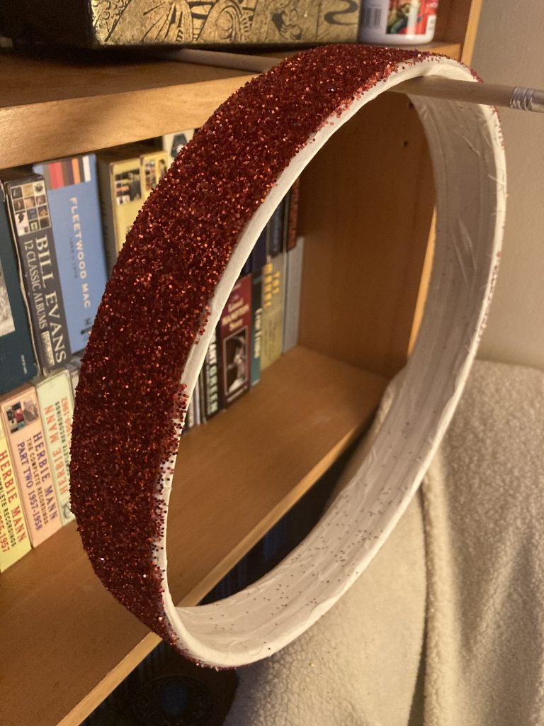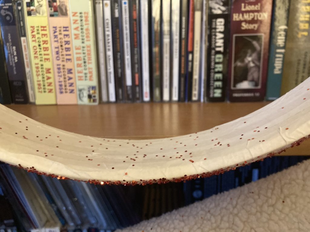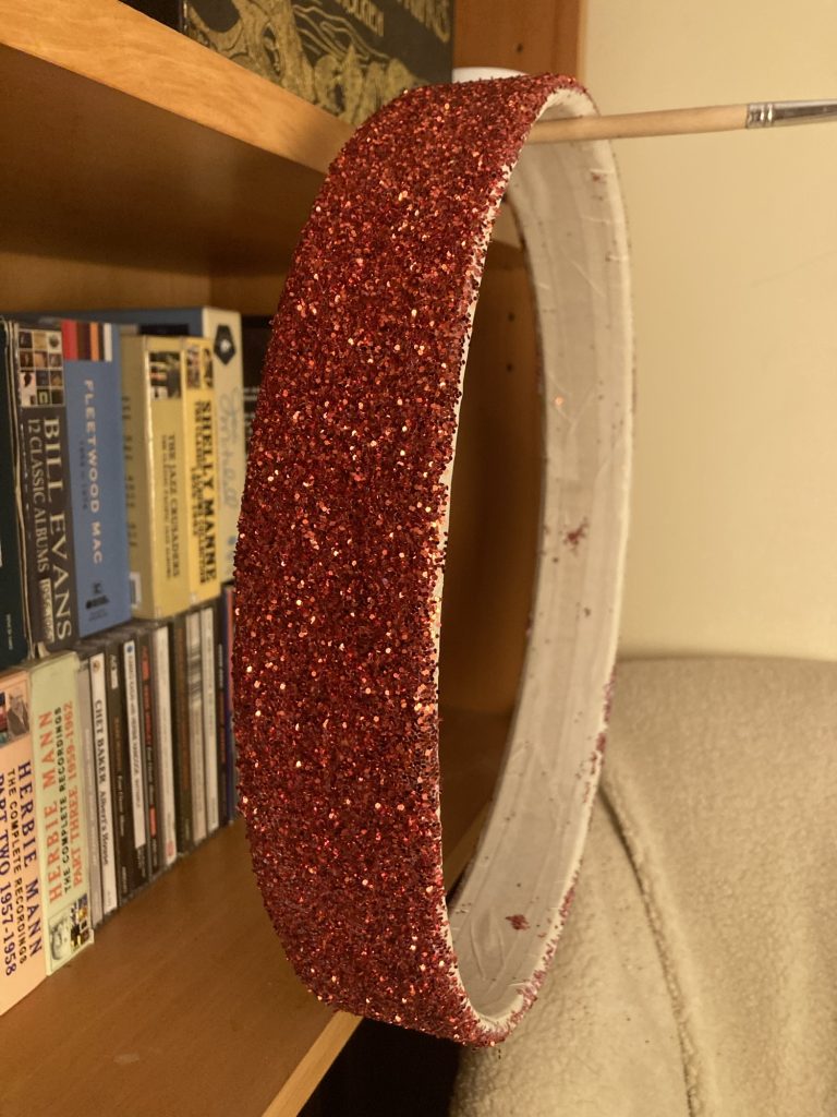 Yesterday I put two coats of gloss lacquer and orange sparkle glitter on my pancake snare.