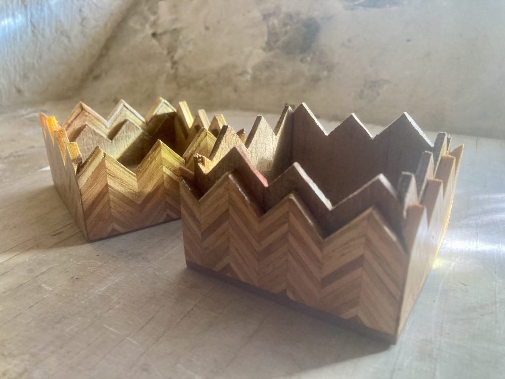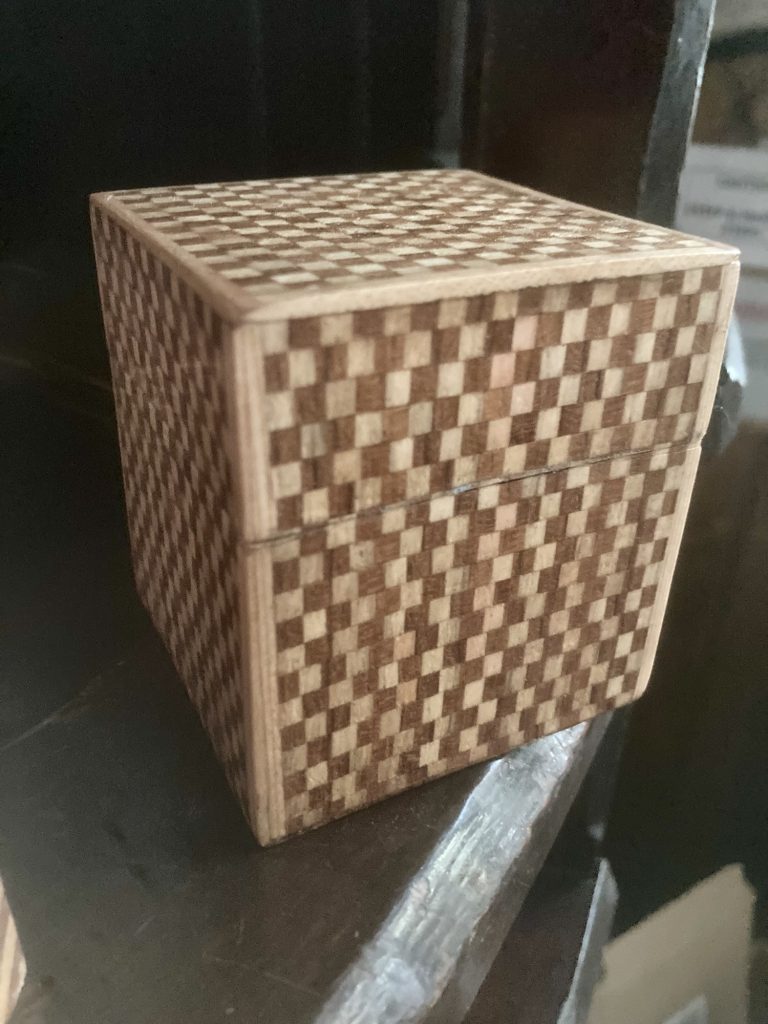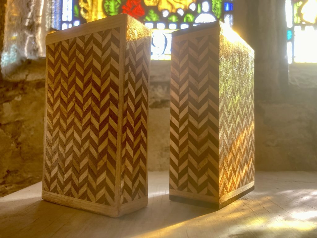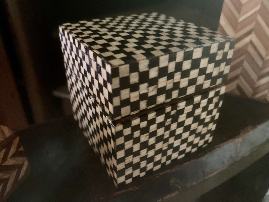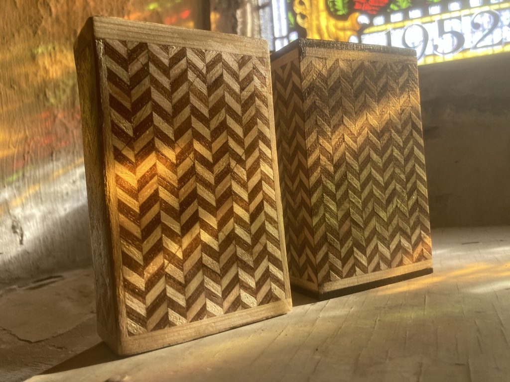 I’m also very keen on this different chequerboard style. I’ve done one in bog oak and pine (already sold), and another in a lighter/browner combo. I want to do a lot more in this vein. This is among the more time-consuming designs to execute. And can vary dramatically in terms of precision (which I love; it’s part of the handmade aesthetic/charm!).