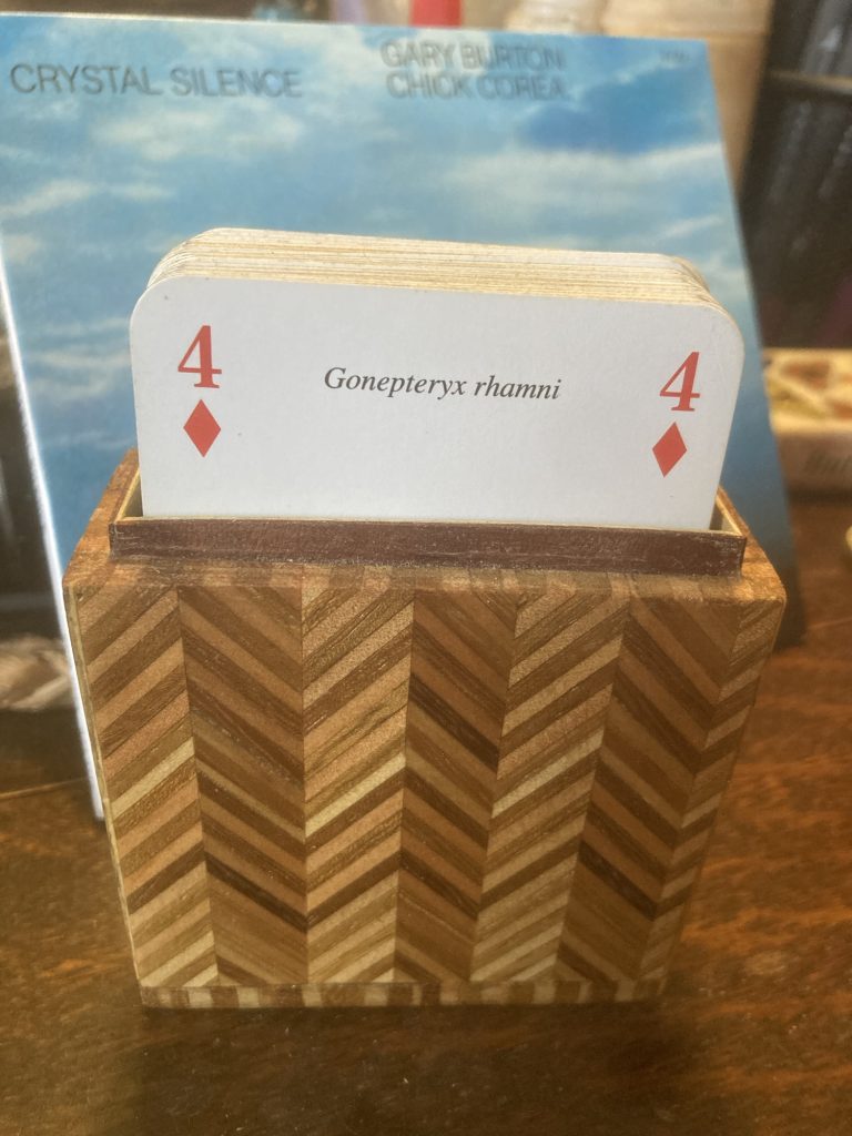 The two boxes below are very much like the first such box I made (a card-holder). And could carry old fashioned cigarettes, or all manner of things. But I guess they’re kind of most obviously playing-card or cigarette-box looking creations.