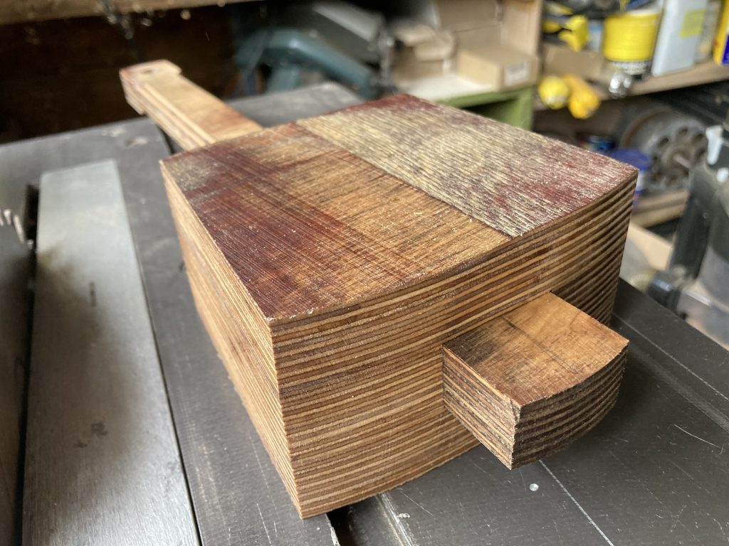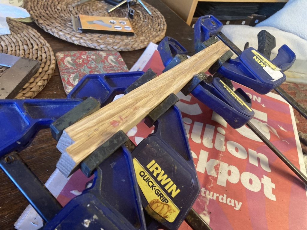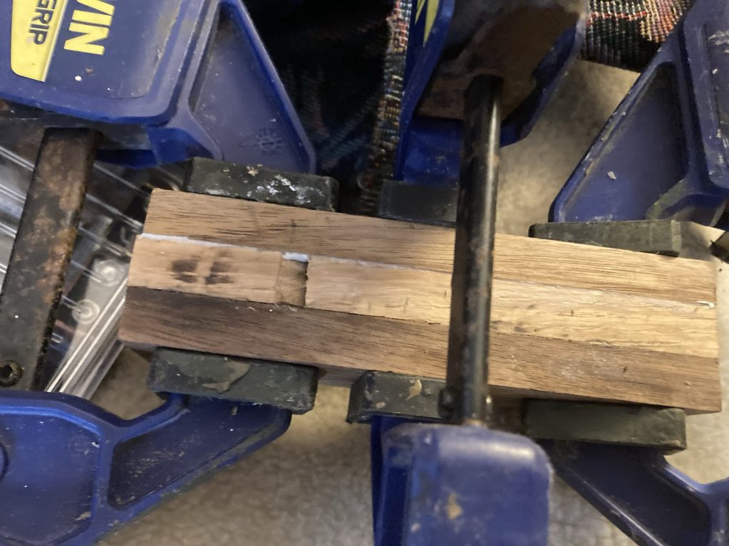 So… I’m gluing up some oak scraps, ready to try again. Plus I still have some walnut left. Although I might instead use keruing?