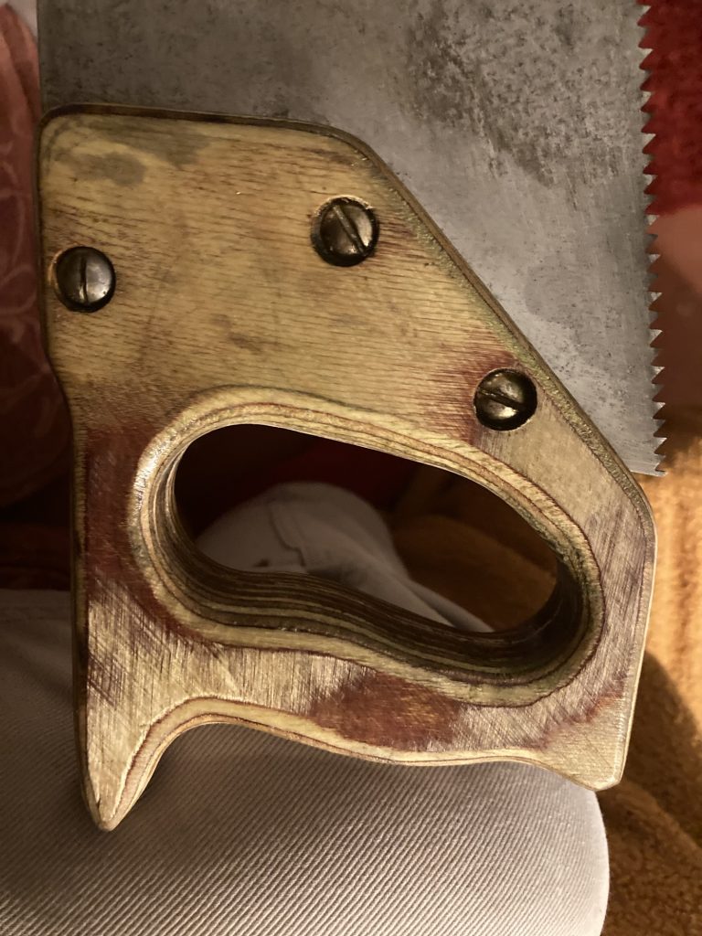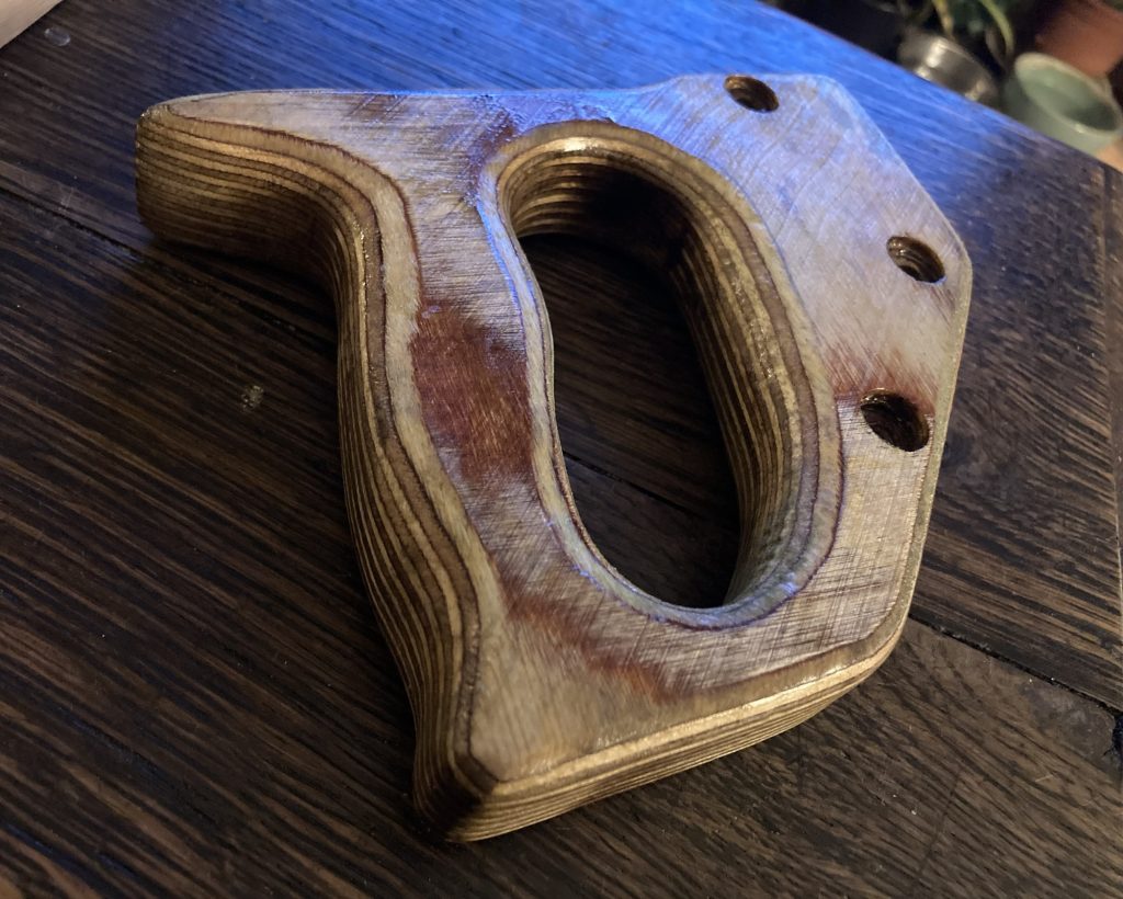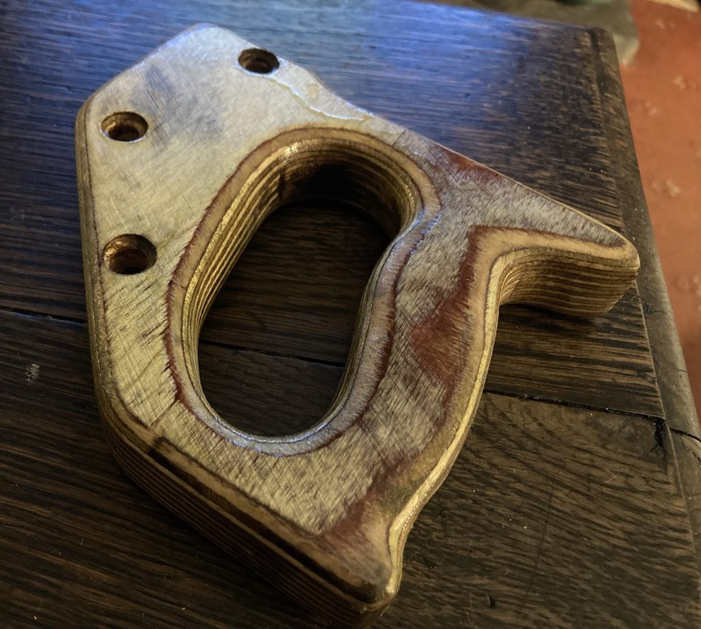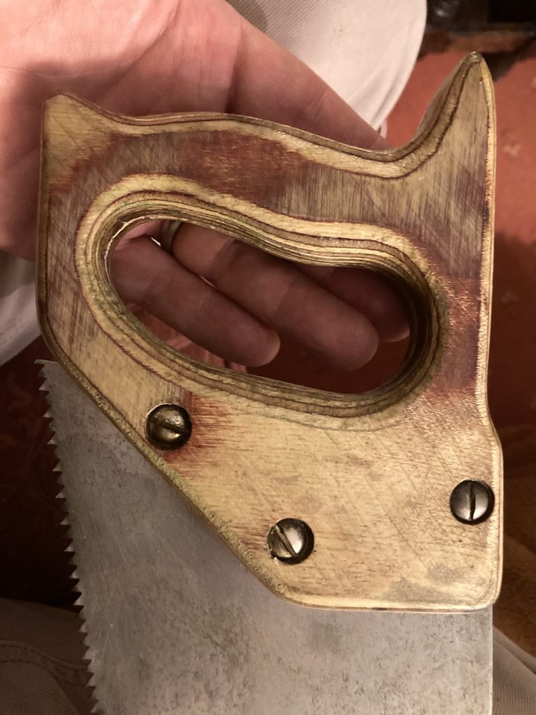 Some years ago the handle for this saw either broke, or I just plain didn’t like it (plastic?). So I made a new one, using marine ply.