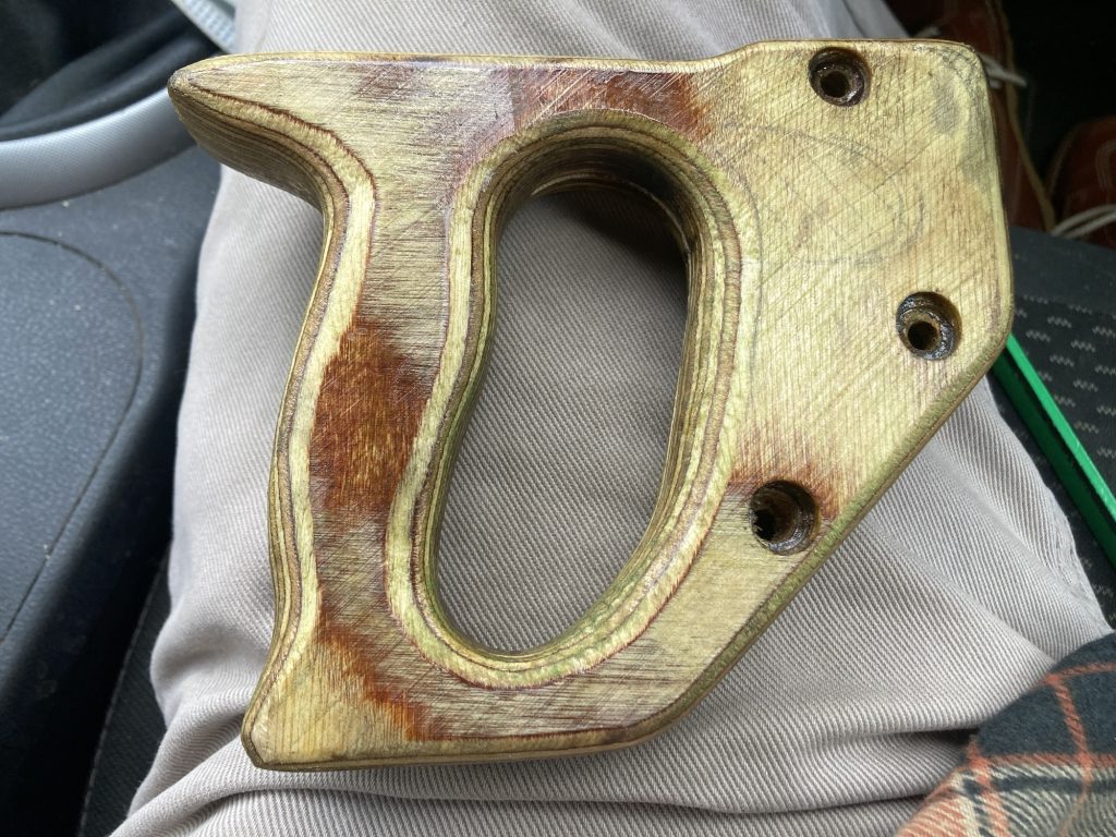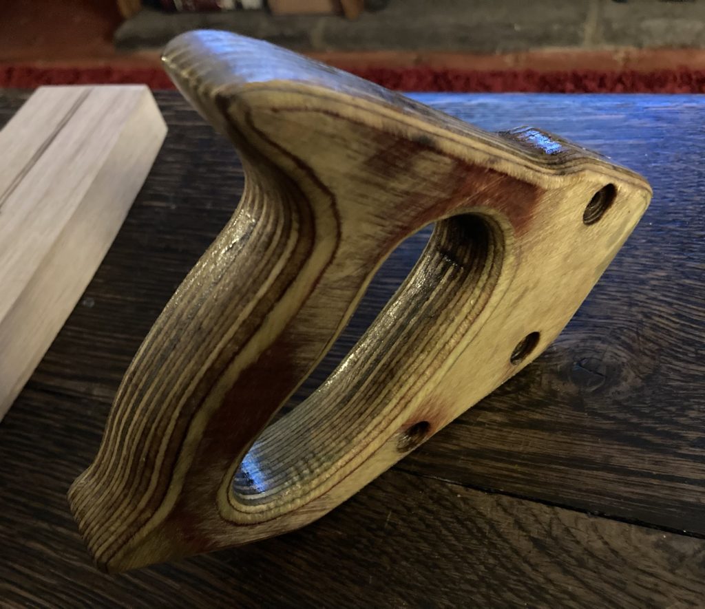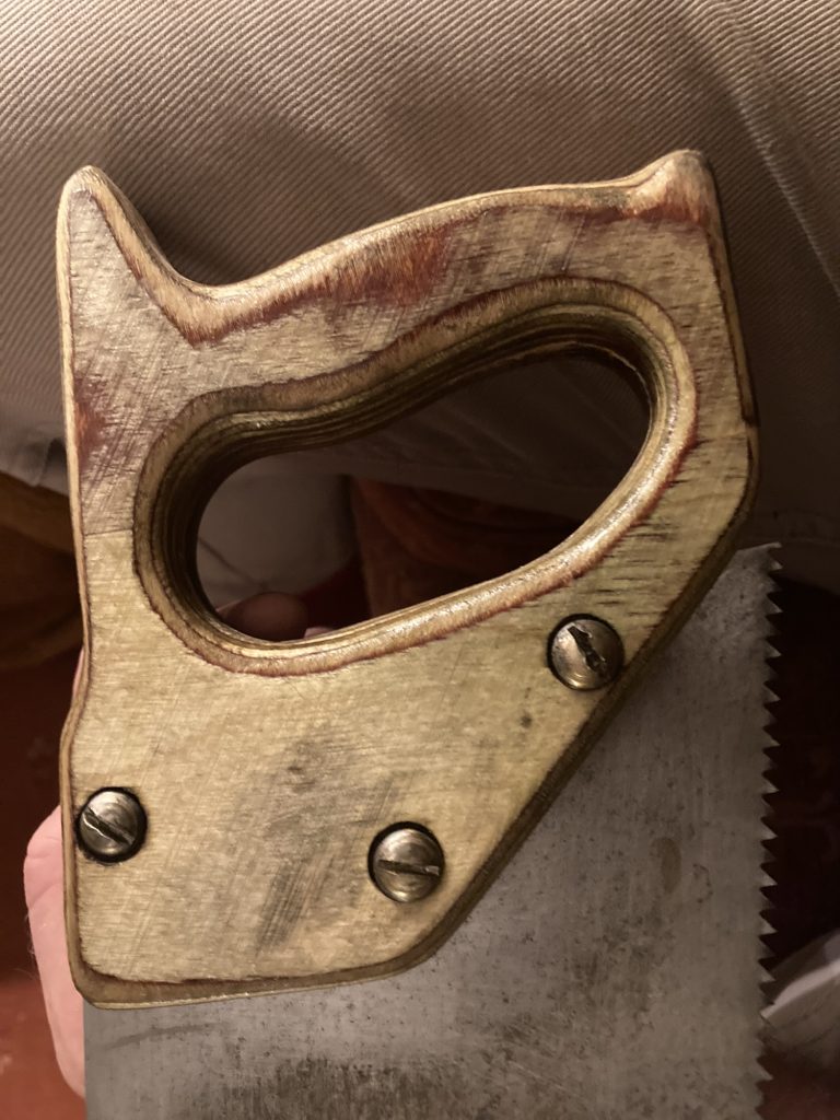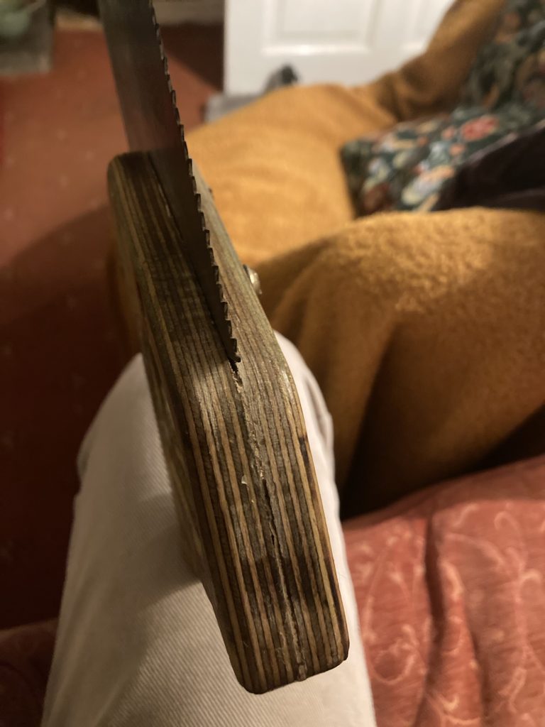 Some years ago the handle for this saw either broke, or I just plain didn’t like it (plastic?). So I made a new one, using marine ply.