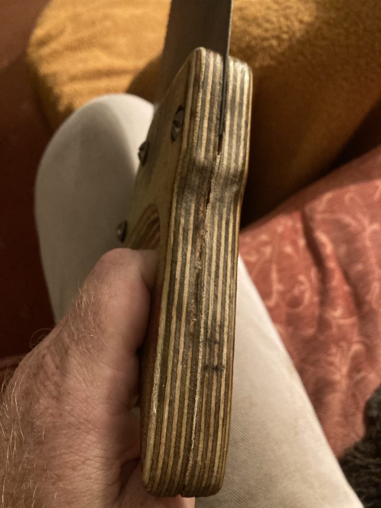 The new handle had several issues: it was way too thick; the groove I cut for the saw blade was way too wide (so much so the blade wasn’t properly secured in the handle); and it was plain ugly, shape wise.