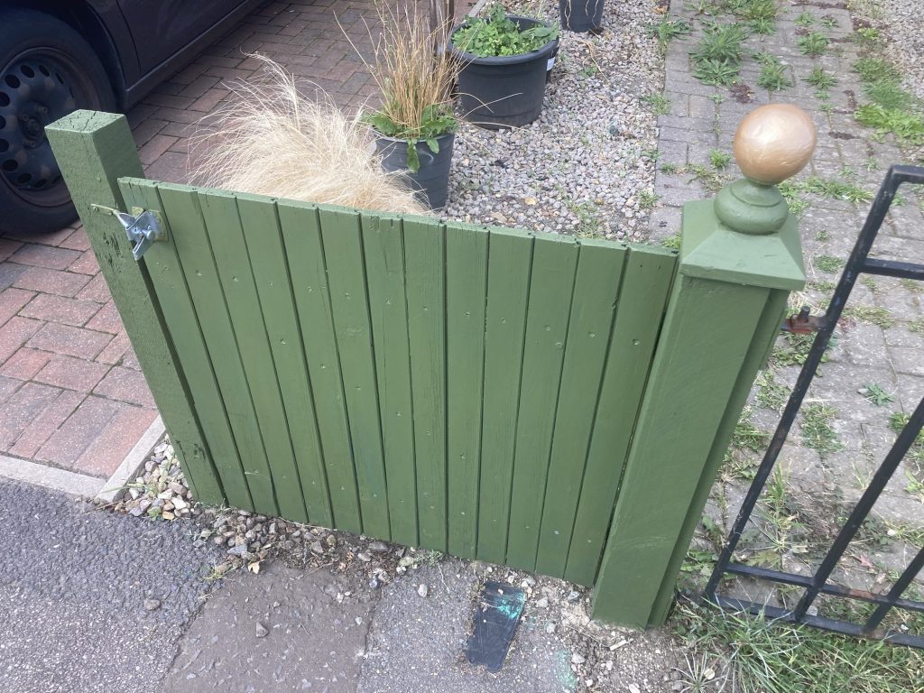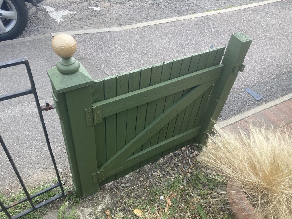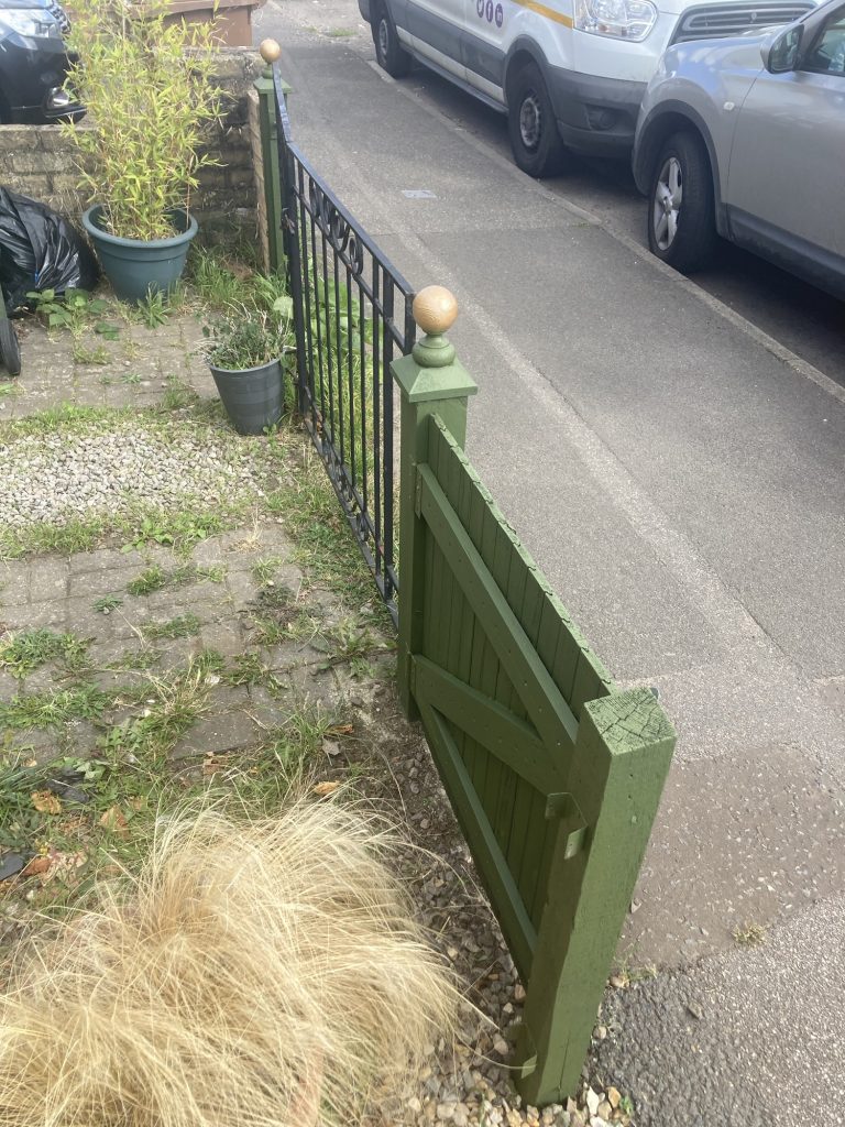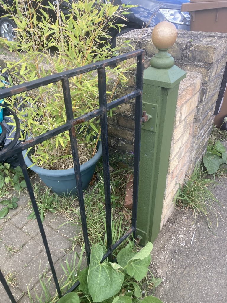 The front gate and gate-posts were looking a bit tired and tatty. I’d painted the balls gold, some while ago. But I’d not addressed the sorry state of the blue main coat.