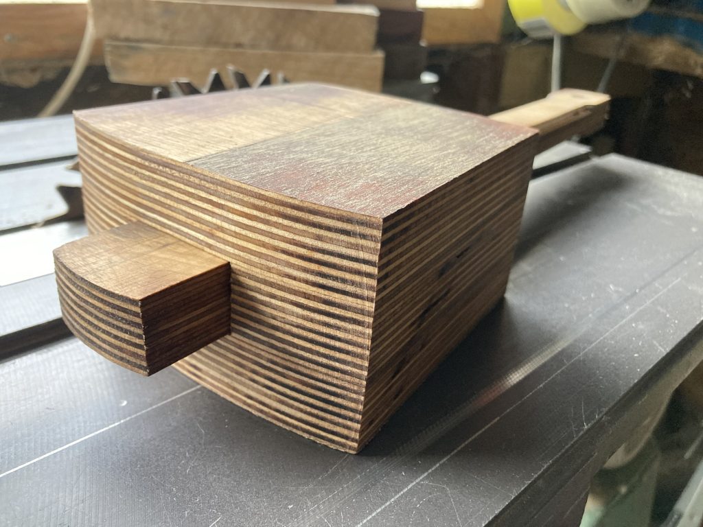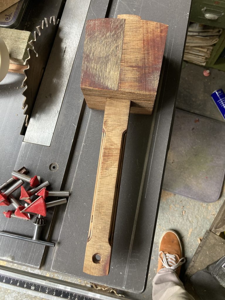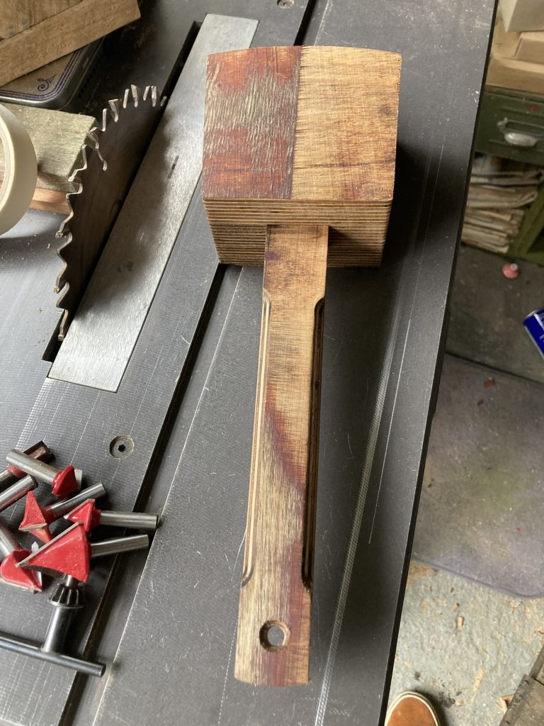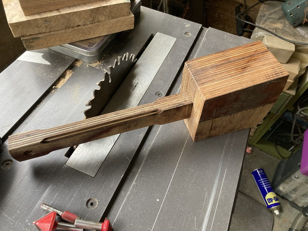 I posted about my new oak mallet on FB. And, to my surprise, a pal said it gave him ‘mallet envy’; could I make him one? As I haven’t got enough oak left, I’m trying out marine-ply.
