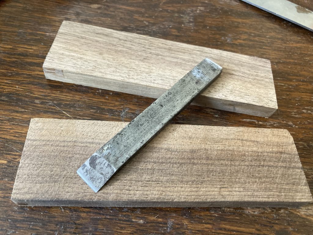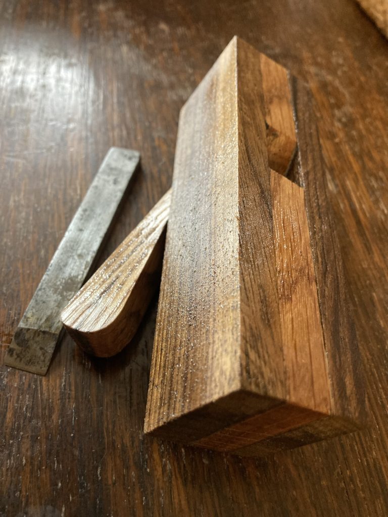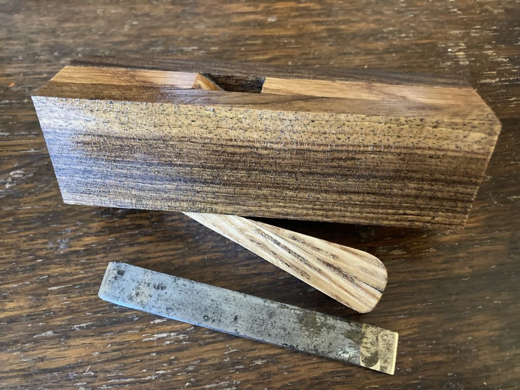 Yesterday I made all the basic parts for this plane, and then put them together. Today, I’m working on the central groove, the blade, and hopefully getting it to the stage of being a usable tool.