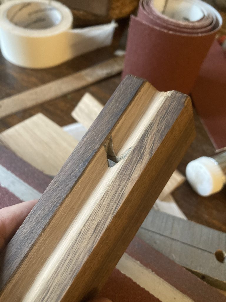 Oh well… I’ve butchered this first plane attempt. In trying to chop out a chip/shaving channel, I completely jiggered the sole of the plane.