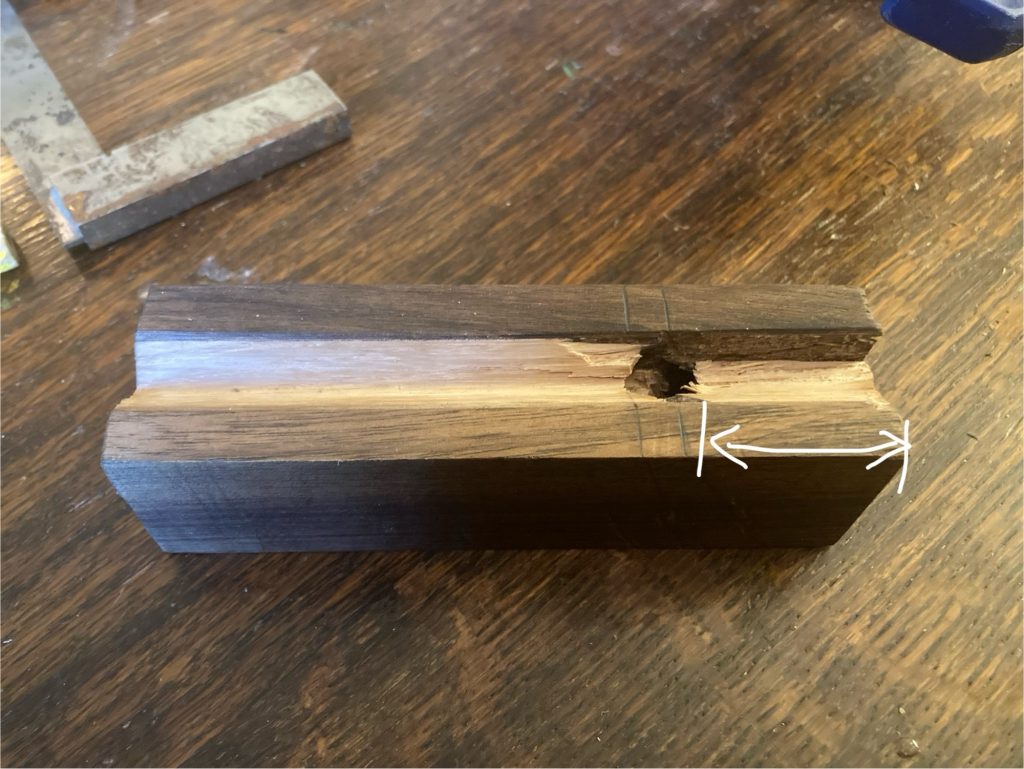 So, I’ve pencilled in a channel that needs drilling/cutting/chiselling, and otherwise hollowing out. Hopefully this will allow the chips or shavings/planing waste to exit, without clogging up the plane.